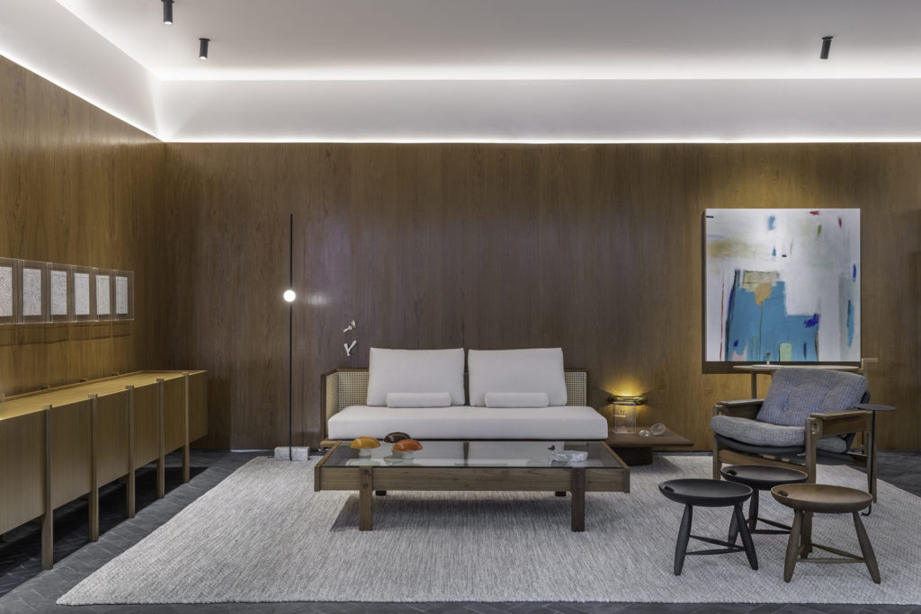 Felipe Zorzeto e Marcella Schiavoni, do escritório Studio Varanda, fazem sua estreia na mostra assinando o Studio do Designer. O espaço de experimentação, contemplação e criação possui 45m² e retrata um ambiente que a dupla de arquitetos teria em sua própria casa. O objetivo é proporcionar ao visitante o universo da criação. No mobiliário, peças dos icônicos Jader Almeida, Sérgio Rodrigues e Guilherme Wentz, que se misturam a criações autorais do próprio arquiteto do ambiente, Felipe Zorzeto. Destaque para o piso em ardósia com tamanhos e paginação diferentes do usual, ressaltando a beleza dos materiais tradicionais.