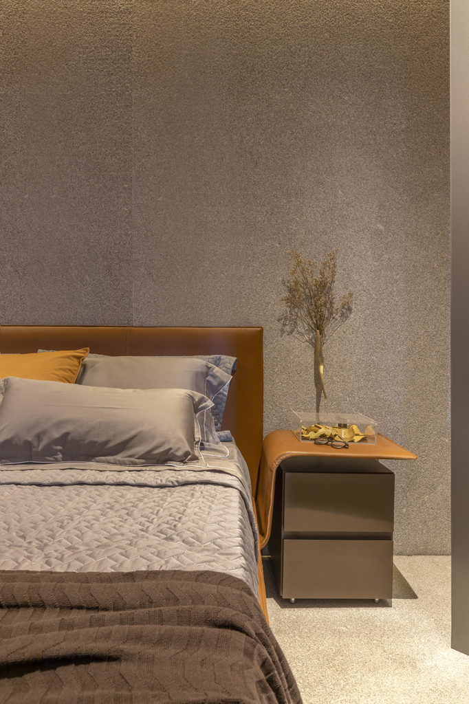 As experiências em hotéis pelo mundo foram a inspiração do escritório ONZI.ARQ de Ana Paula Onzi para criar o ambiente de estreia na mostra. Com 45m², a arquiteta investiu em texturas para trazer a sofisticação, que vão desde as das paredes e teto, passando pelo tecido da cama e também na bancada do banheiro, especialmente desenvolvida para o projeto da CASACOR Brasília. Destacam-se as luminárias assinadas pelo designer Waldir Junior, como o pendente suspenso, espelho e poltrona de design. Compõem ainda o projeto, quadro de 150x150cm de M. Cavalcanti.