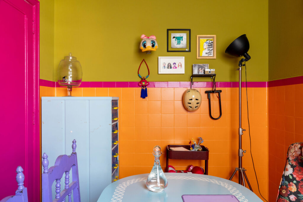Para os adeptos ao maximalismo, este é um exemplo perfeito de como misturar as tonalidades Anos Setenta, Rosa-Choque e Eclipse com objetos ecléticos e divertidos pode criar um espaço único e cheio de originalidade, imprimindo criatividade e energia.