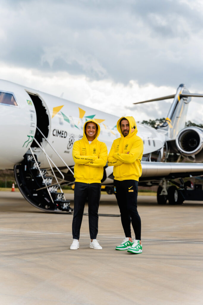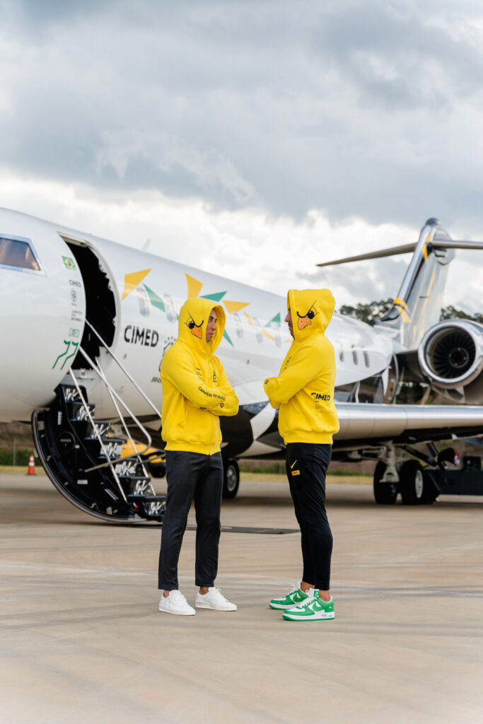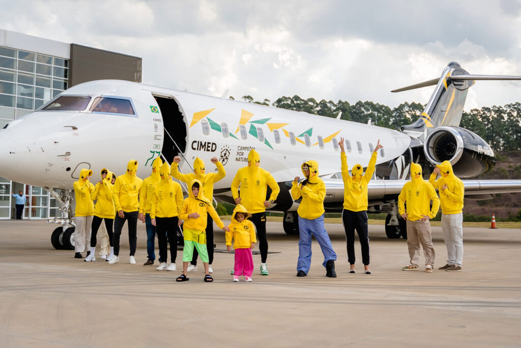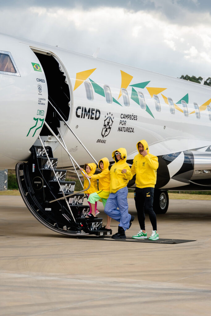 A família Cimed embarcou na tarde de hoje unida para o Qatar, onde acompanhará a Copa do Mundo de futebol e vai compartilhar a experiência em suas redes sociais, que hoje juntos somam 6 milhões de seguidores no Instagram. A família veste o moletom mais desejado do Brasil, amarelo Cimed com o canarinho da Copa, em uma collab da companhia com a marca Overcome.