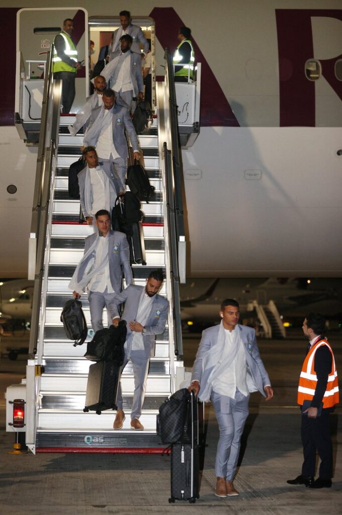 “Assim como em 2018, o look dos atletas tem detalhes diferentes do traje da comissão técnica. Enquanto os jogadores usam uma camisa de linho em gola Mao e uma echarpe de algodão leve com trama aberta – referência aos lenços masculinos da região (ghutra), porém com formato de uso ocidental – a comissão manteve o estilo clássico com camisa de algodão em microdesenho xadrez e gravata de seda”, informou Almeida.