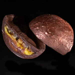 Casca de chocolate meio amargo, recheada com creme de maracujá, trufa blend e crocante de coco caramelizado no suco de maracujá Peso 550g (aprox.) R$ 130,00