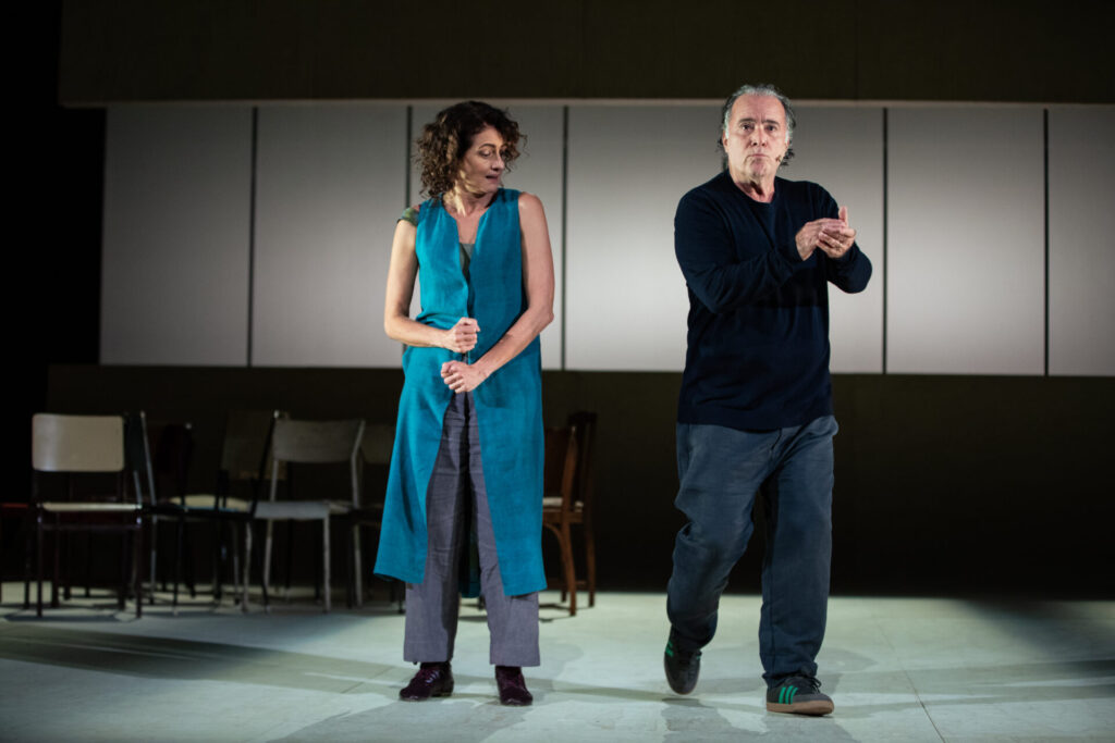 Neste contexto, em meio a cenas que dramatizam questões pungentes do mundo contemporâneo como o aquecimento global e a crise climática, a dominação dos seres humanos por telas e pelo capital, a condição feminina e o patriarcado nesse 2024, a possibilidade, a dificuldade e a reinvenção para criar filhos, amigos e vínculos diversos. Com essas cenas, juntam-se a memória desses dois atores e textos de peças clássicas da dramaturgia, como Tio Vânia, de Anton Tchekhov e Galileu Galilei, do alemão Bertolt Brecht, como que para demonstrar, sem explicações didáticas ou professorais, que o teatro atemporal é um instrumento poderoso para pensar qualquer tempo, através de sua força arquetípica e capacidade de condensar dramas humanos. Juntam-se ainda, ao texto da peça, o pensamento da autora, ativista e feminista bell hooks, os ensaios e crônicas da escritora polonesa Olga Tokarczuk, textos da jornalista e documentarista brasileira Dorrit Harazim, a prosa da francesa Annie Ernaux, e a poesia de Fernando Pessoa, Arnaldo Antunes, João Cabral de Melo Neto, entre outros.