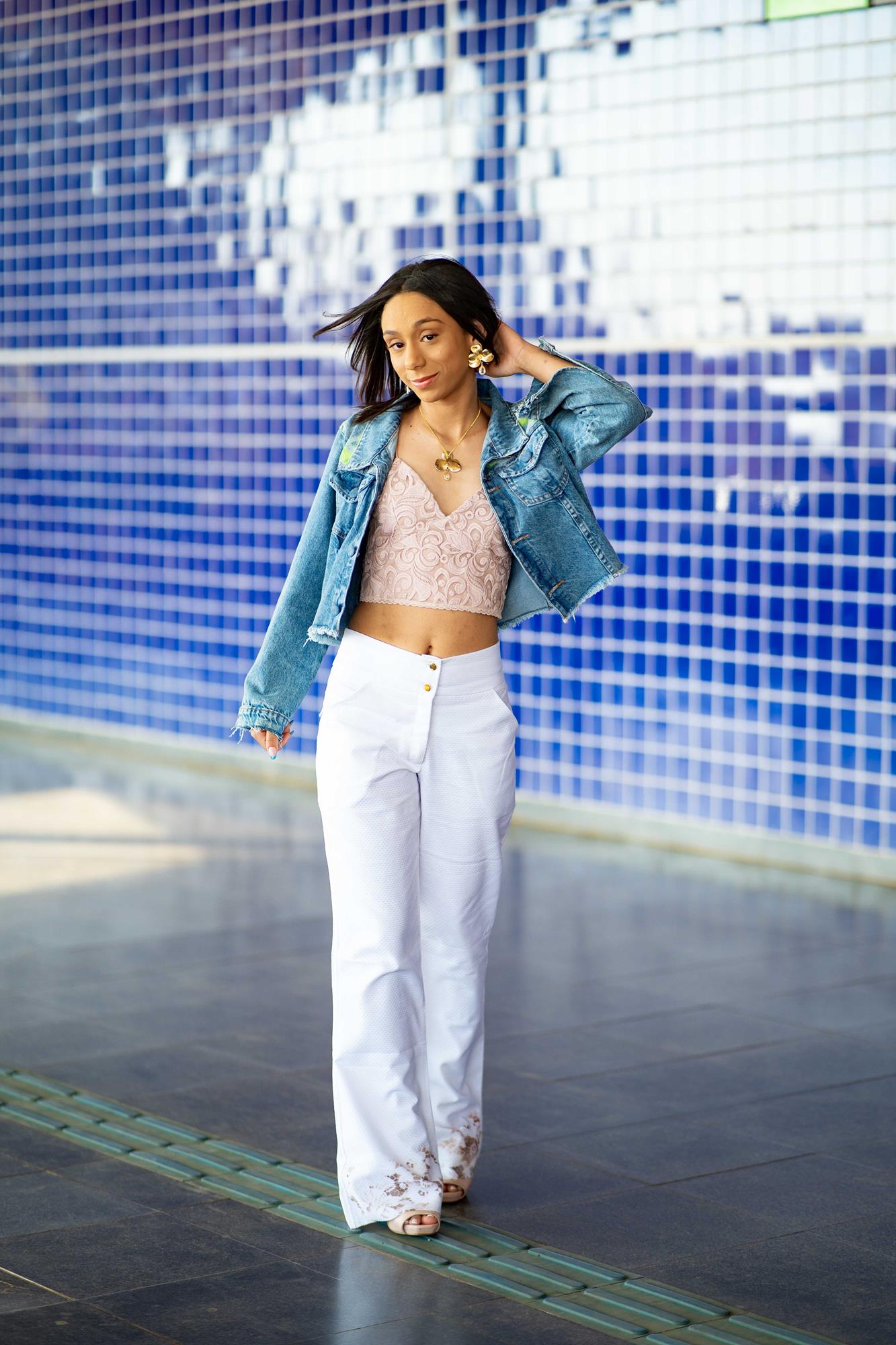 A coleção dialoga com a Street Art, através do grafite e, embora bastante contemporânea, flerta com o clássico, trazendo peças de alfaiataria, por exemplo. A técnica escolhida por Rosangela foi, predominantemente, a da customização, o que evidencia o caminho da sustentabilidade. “Do processo de concepção à confecção, chegamos a looks exclusivos. Com base no reaproveitamento de algumas peças, mesclamos tecidos nobres como o linho, rendas, tules e cambraias de linho com o nosso jeans do dia a dia. Buscamos dar o mesmo peso à criatividade e à responsabilidade na construção das peças para reforçar o compromisso com o consumo e produção consciente”, explica Rosangela.