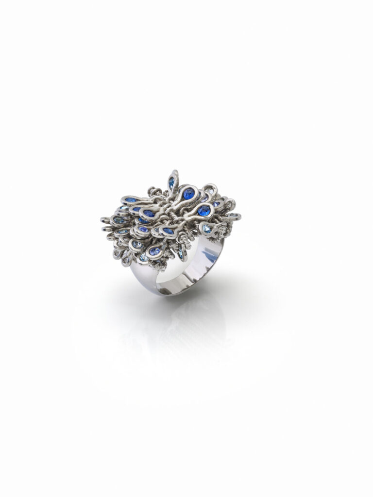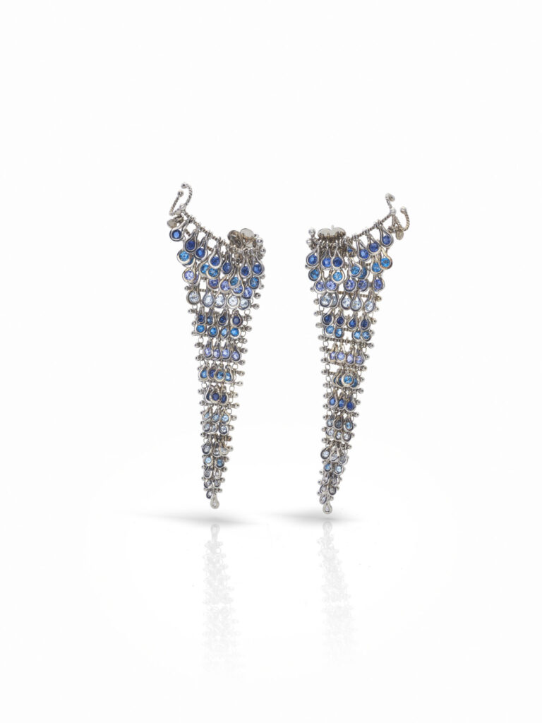 Para esta quarta edição da Milano Jewelry Week, Vânia vai apresentar seu conjunto exclusivo Yara, que inclui um deslumbrante par de brincos e um anel, ambos confeccionados em prata 950k e adornados com uma impressionante combinação de safiras, tanzanitas, topázios London, Sky e Suisse Blue, além de diamantes brancos.