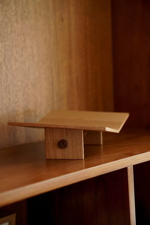 Produzido em madeira maciça freijó, o livreiro VERA evidencia o cuidado da marcenaria e o respeito à matéria-prima natural, marcas do trabalho neomodernista do designer. Mais do que uma peça funcional, o livreiro se apresenta como um objeto simbólico, capaz de atravessar usos e momentos, reforçando a relação afetiva com os livros e propondo uma presença mais sensível e consciente dos objetos nos ambientes.