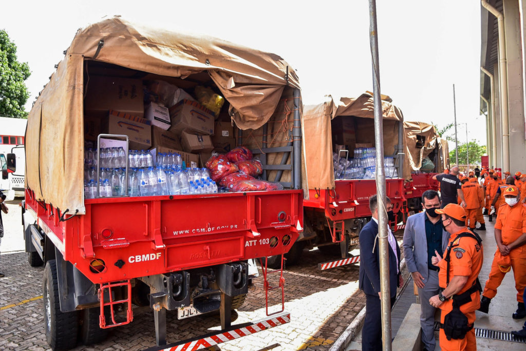 O vice-governador ajudou a carregar os sete caminhões que sairiam de Brasília por volta das 13h com as doações. A solenidade aconteceu no Centro de Capacitação Física (Cecaf) do Corpo de Bombeiros Militar do DF, no Setor Policial Sul (SPS). “As forças de segurança mostraram, mais uma vez, que estão alinhadas e que todos se unem em prol de um só objetivo. Estaremos sempre focados em ajudar ao próximo, esta é a nossa missão”, explicou o comandante-geral da Polícia Militar do DF, Márcio Cavalcante Vasconcelos.