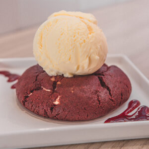 No American Cookies, a pedida é o Cookie Mão Bola de Sorvete. Qualquer sabor tradicional de cookie mais uma bola de sorvete por R$16,90. Ou, com cookies recheados mais uma bola de sorvete, por R$17,90.