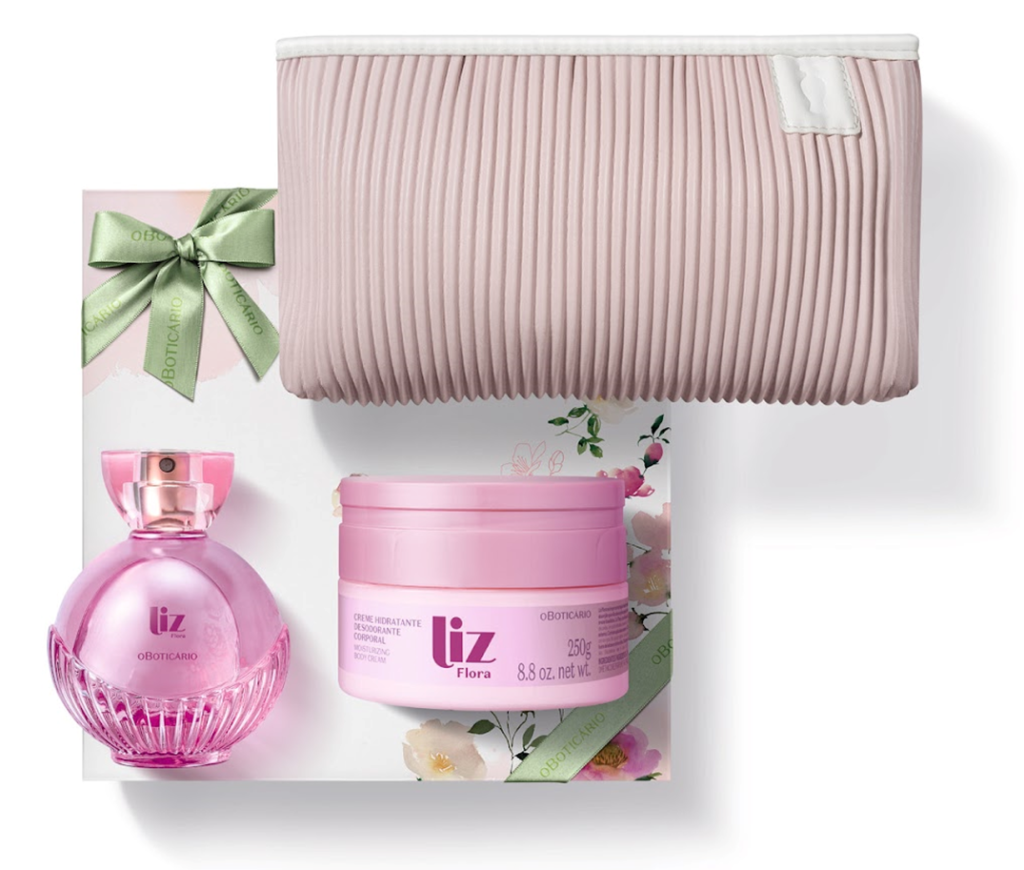 Ainda em perfumaria, o Kit Presente Dia das Mães Liz conta com creme hidratante, sabonete líquido e a fragrância, entregando autocuidado. A composição irresistível combina com mulheres que buscam por fragrâncias com personalidade e potência.