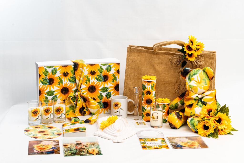 O primeiro kit criado para o Dia das Mães tem estampa de girassol. Considerada a flor da felicidade, o amarelo do kit realmente transmite essa sensação. O kit vem com objetos personalizados e com estampa de girassol. Dentre as peças, tem: urso de pelúcia, caneca, tote bag, home spray, vela, mouse pad.