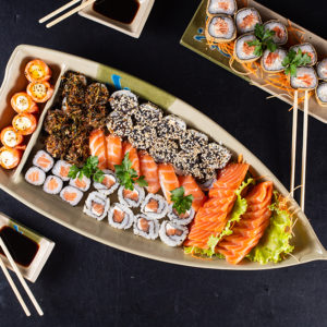Outra opção para quem não vai sair de casa, são os combos Haná, elaborados com uma variedade de sushis e sashimis.