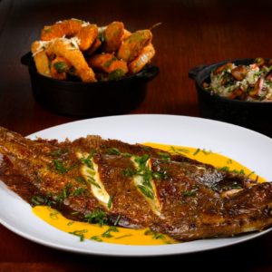 No Taypá a sugestão é o Linguado da Costa (peixe ao forno, molho cremoso de pimenta amarela, snack crocante de vegetais e arroz especial da casa), R$ 158,00.