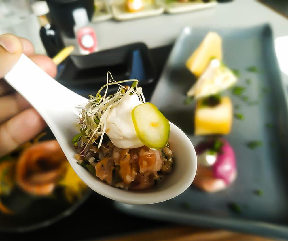“Com o especial, posso oferecer ao cliente uma experiência única do que borbulha pela minha cabeça, sem amarras criativas. Neste versão comemorativa, o quibe de salmão cru com queijo fresco e biribiri defumado é uma surpresa pela leveza e acidez. Já o Gunka com camarão curado, traz a textura da cura com dulçor da beterraba e o toque de especiarias da lichia numa potência incrível”, explica a chef.