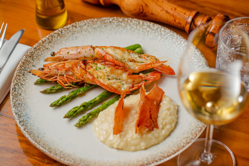 AROMA (407 SUL) – De clima romântico o Aroma entende! O chef Ronny Peterson promete surpreender os apaixonados com uma seleção de pratos exclusivos criados especialmente para a data, além de música ao vivo com o saxofonista Jordan. Logo de entrada, a sugestão do chef é uma Vieira grelhada com emulsão de moqueca, mini milho tostado e aioli de corais (R$ 128). Já de prato principal, duas opções: Ravioli na massa de beterraba, recheado com brasato de costela sob um creme de palmito e finalizado com uma telha de parmesão (R$ 84); ou Camarão com risoto de queijo brie, aspargos tostados e pó de parma (R$ 160). Por fim, para adoçar os paladares uma Panna cotta com calda de tangerina, laranja kinkan, biscoito de leite e creme de manga (R$ 45).