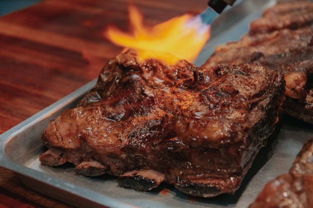 Costela cozida por 24h com redução de vinho tinto e texturas de batatas peruanas