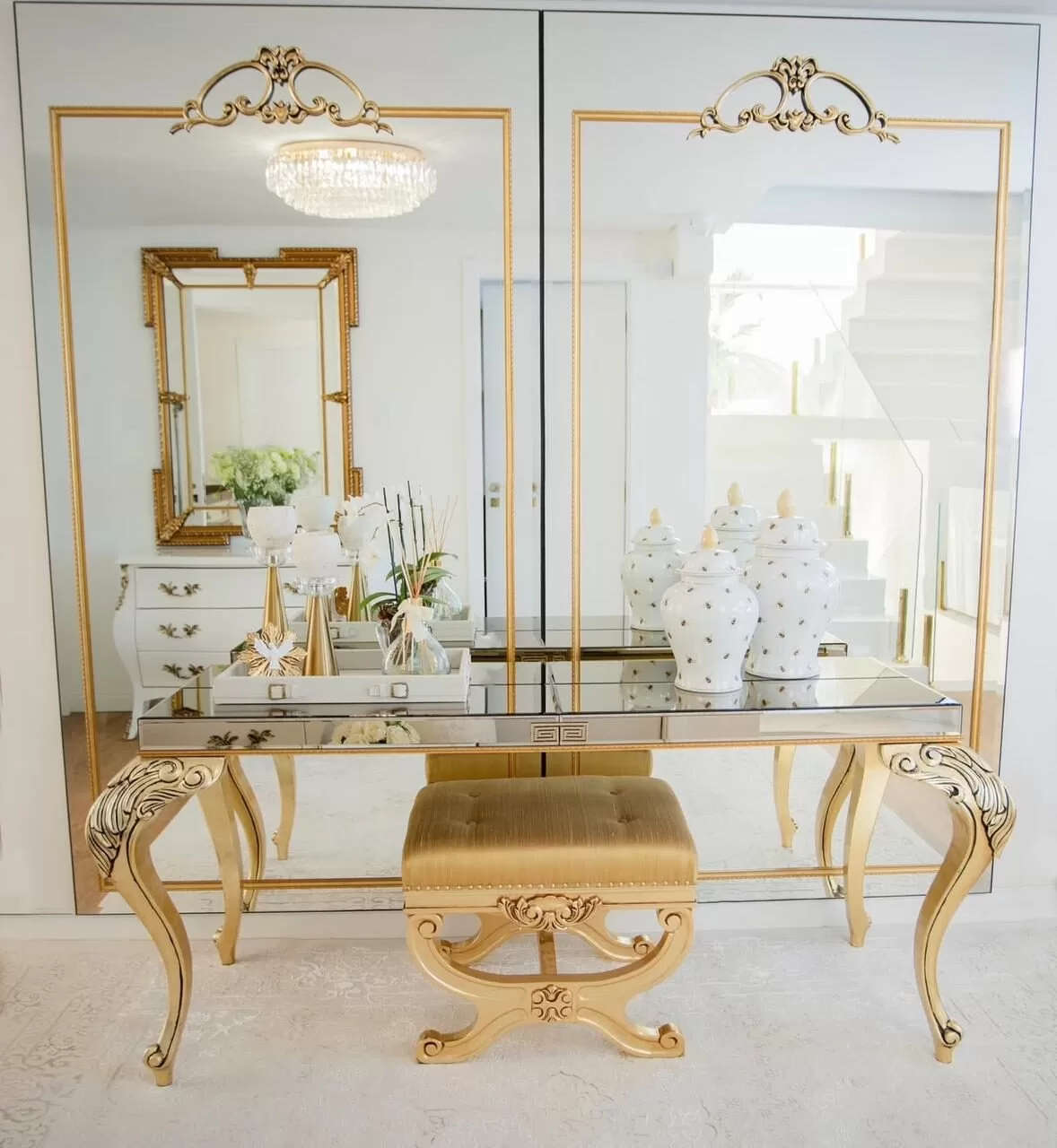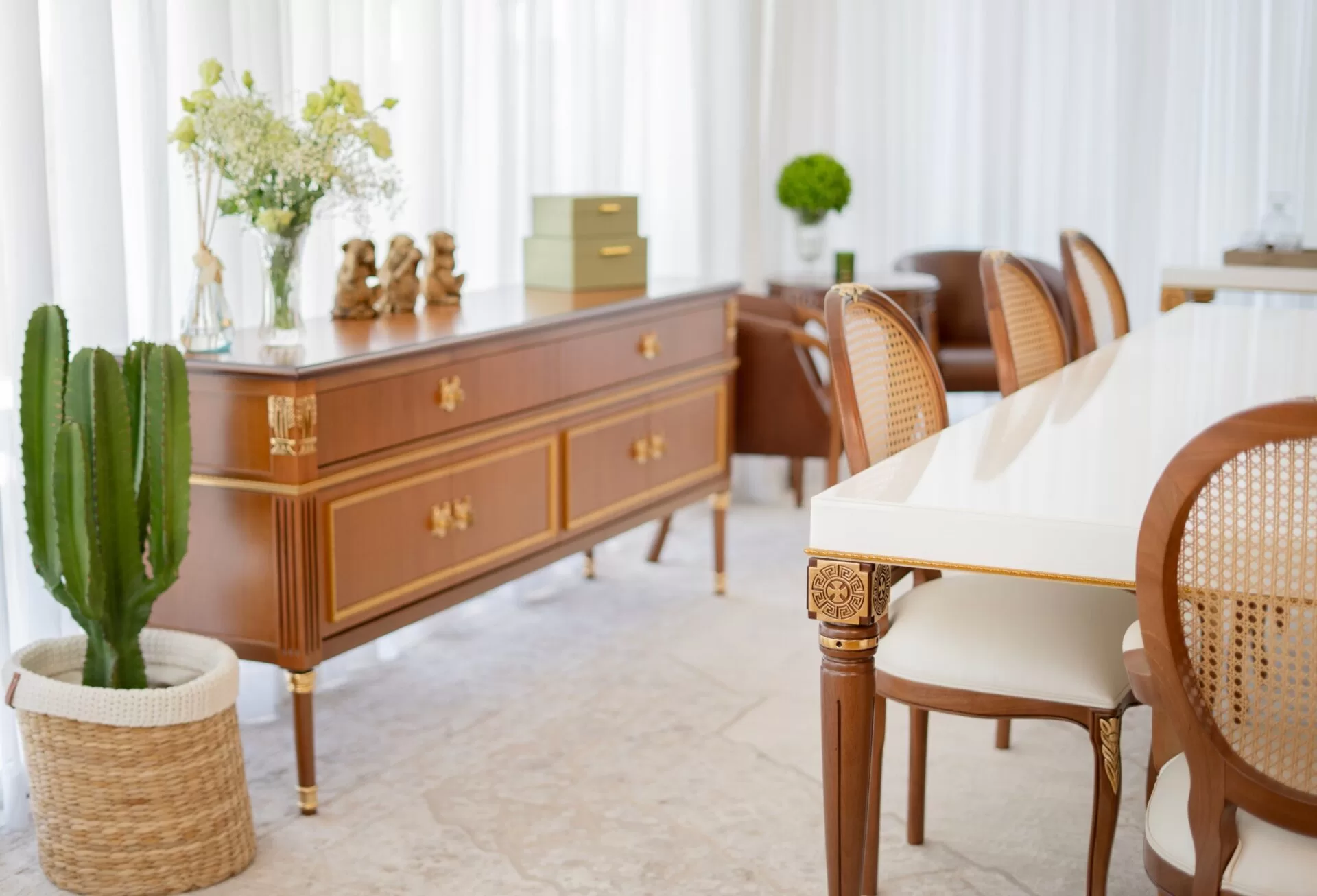 O diferencial da Corazzo está na preservação de técnicas artesanais em um mercado cada vez mais industrializado. A marca aposta no fatto a mano, expressão italiana que define o trabalho feito manualmente por artesãos especializados. “Esse é o nosso grande diferencial: fazer algo que ninguém mais quer fazer. O móvel clássico muitas vezes é uma releitura de peças de séculos passados, provando que o clássico é perene e resiste ao tempo”, afirma Roberto. Entre os materiais preferidos, a madeira nobre ocupa papel central, muitas vezes combinada com folha de ouro. “A madeira já é uma matéria-prima extremamente nobre. Aliada à folha de ouro, se torna o supremo do requinte.”