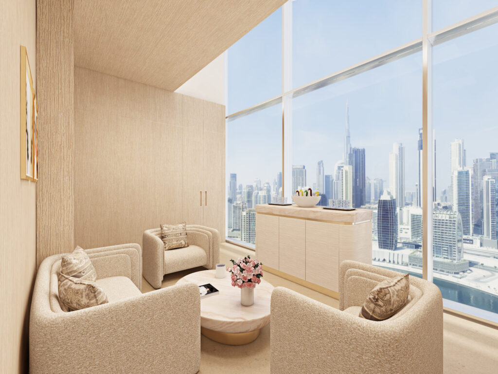 Localizado no 29º andar do hotel, o Dior Spa The Lana oferecerá uma experiência de bem-estar cinco-estrelas. Com janelas do chão ao teto, o local é iluminado pela luz natural e oferece vistas deslumbrantes para monumentos icônicos de Dubai, como o Burj Khalifa.