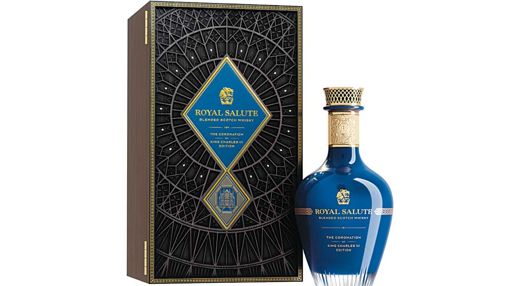 A Royal Salute Coronation of King Charles III Edition estão disponíveis em varejistas especializados e selecionados em todo o mundo.