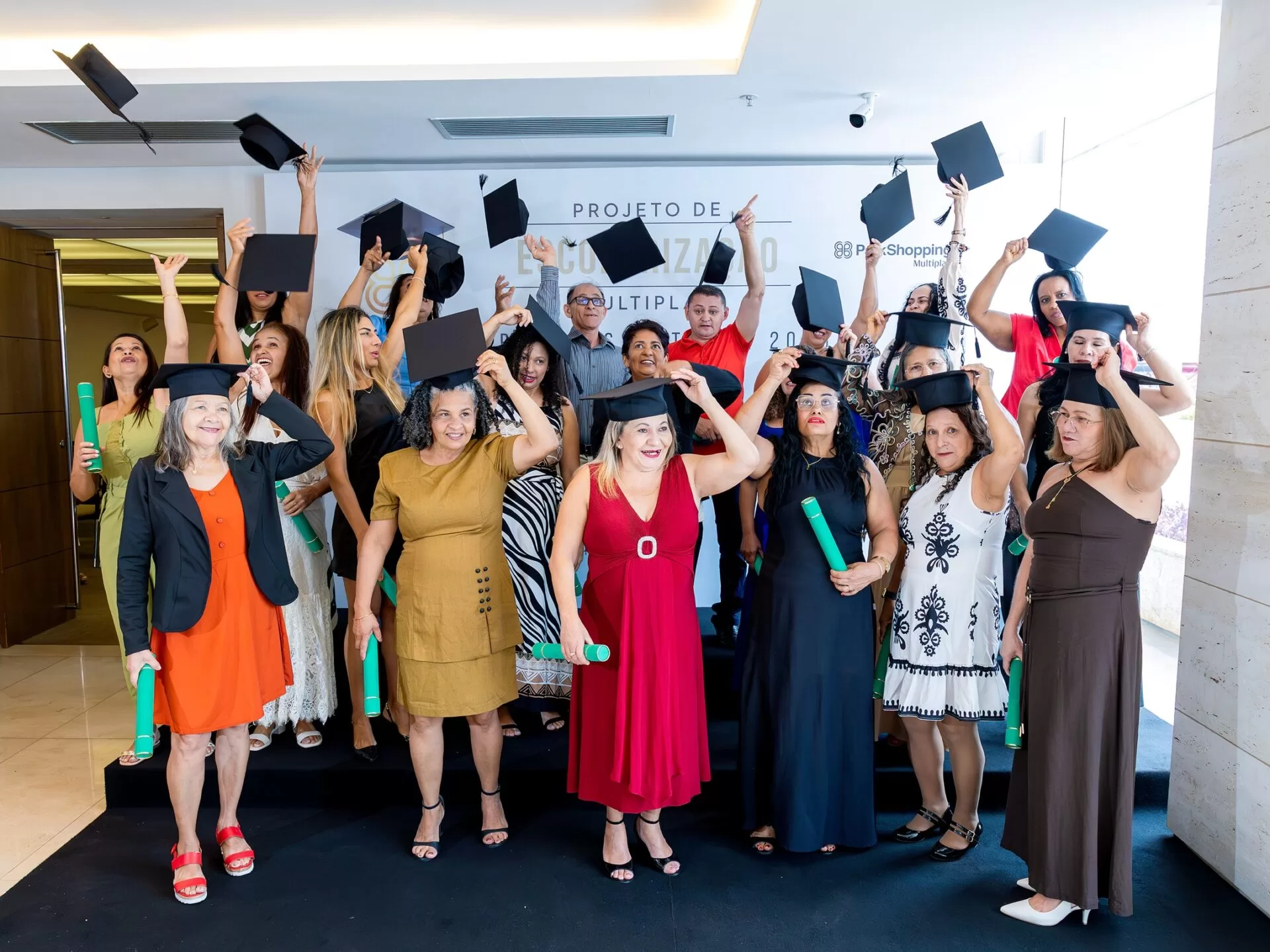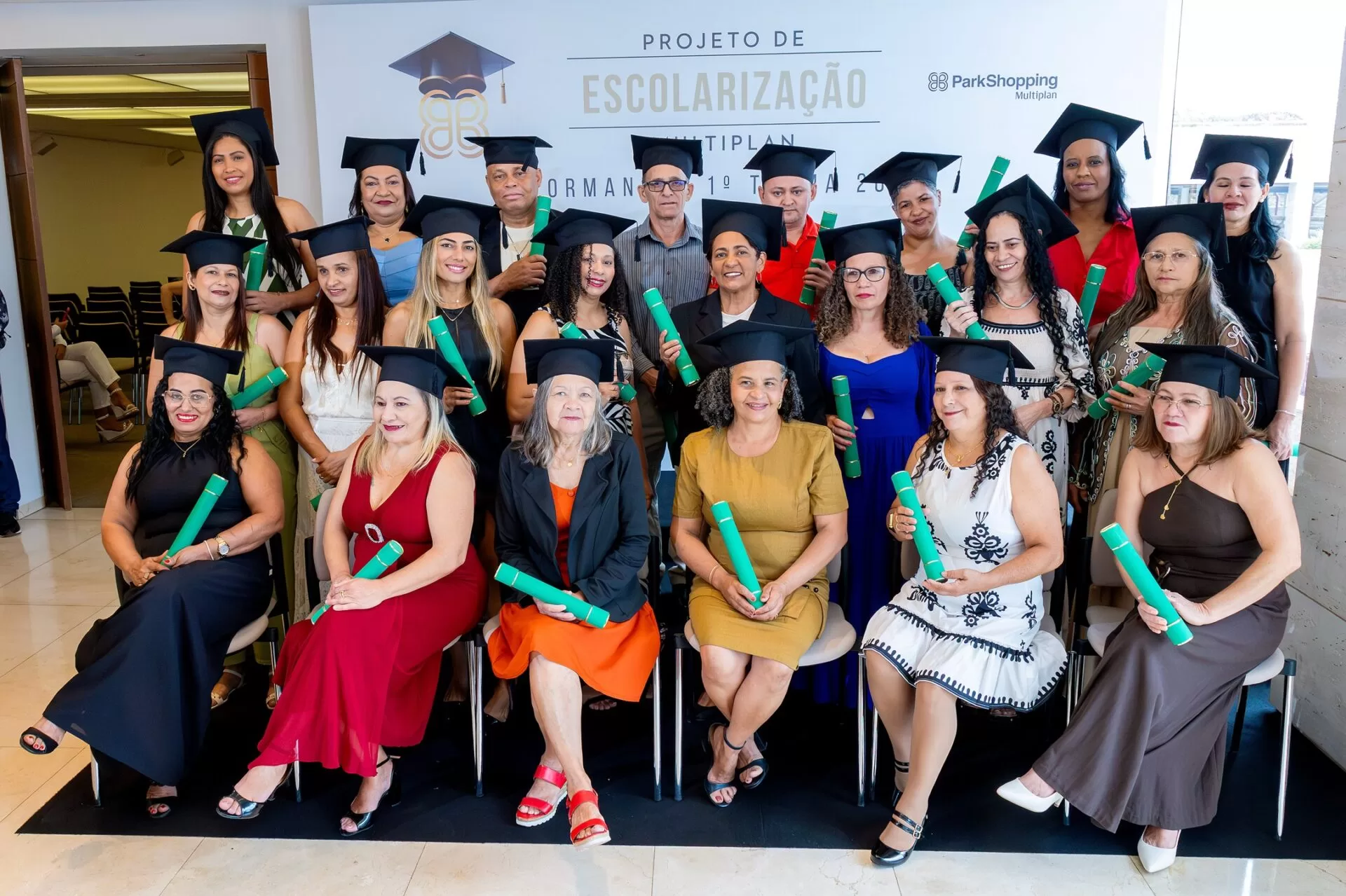 Brasília, setembro de 2025 – O ParkShopping/Multiplan celebrou no dia 19 de setembro a formatura da primeira turma do Projeto de Escolarização. A cerimônia, realizada no Auditório do PKS Corporate, marcou a conclusão do ciclo para 25 estudantes que receberam o diploma em um momento de emoção e reconhecimento. A iniciativa oferece aulas dentro do próprio shopping, com materiais didáticos gratuitos, possibilitando que trabalhadores que ainda não concluíram o Ensino Fundamental e/ou Médio obtenham sua certificação por meio do Exame Nacional para Certificação de Competências de Jovens e Adultos (Encceja).
