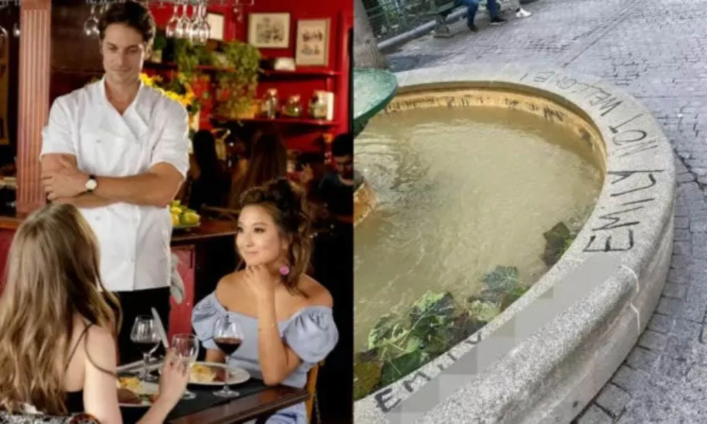 Com palavras de ordem como “Emily, vá embora”, “Emily não é bem-vinda” e “Emily é uma m*rda” aparecem pichadas nas paredes das locações, que acabaram se tornando pontos turísticos desde o lançamento do seriado em 2020.