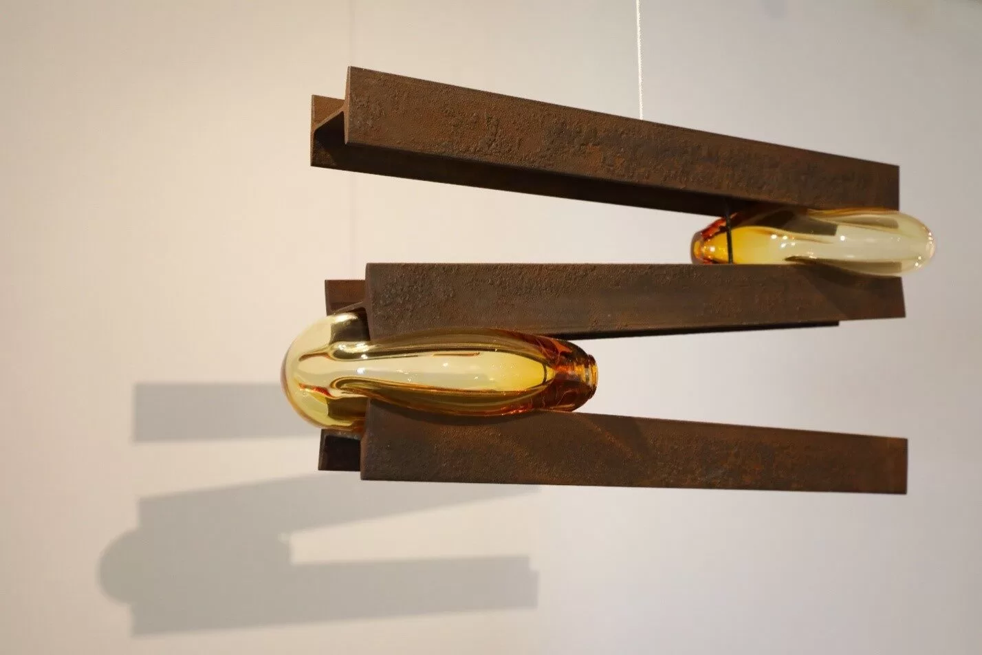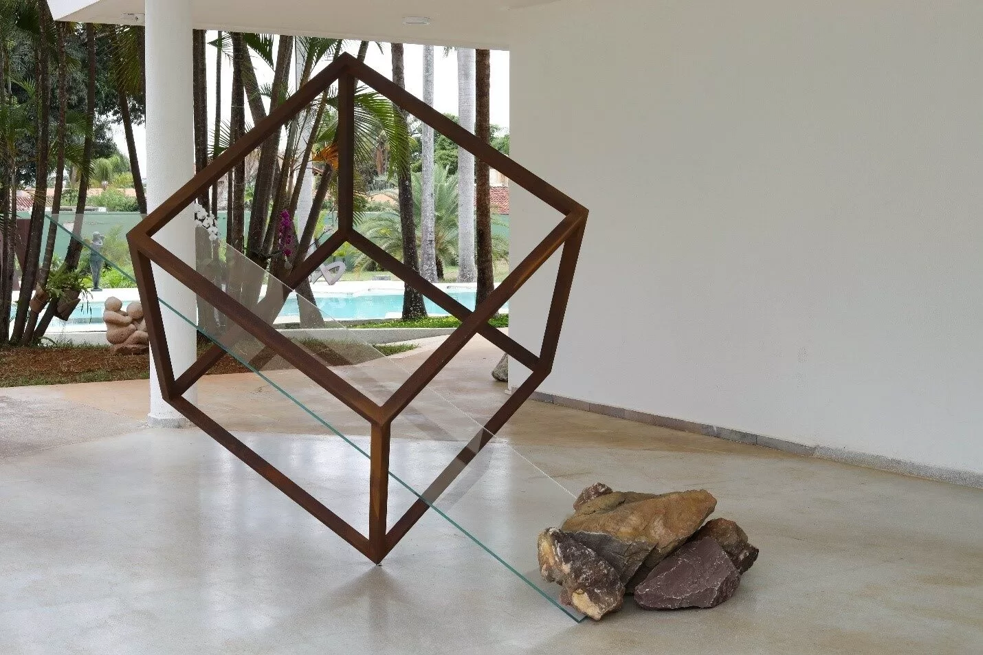 Em “Simples e Composto”, Túlio Pinto conduz o olhar para o essencial. Suas esculturas de aço corten, vidro e pedra criam um campo de tensão e cumplicidade. Entre força e fragilidade, o artista constrói um diálogo sensível com os materiais, uma escrita no espaço em que o peso parece se sustentar no ar, o metal encontra o vidro e o equilíbrio se revela como gesto poético.