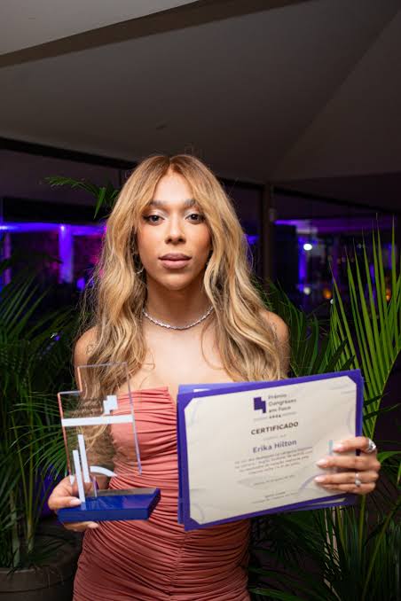“Que alegria receber mais essa premiação, que é um combustível para as batalhas duras e solitárias que enfrentamos diariamente na Câmara. O Congresso Nacional ainda não suporta a chegada da diversidade, da dissidência, daquelas e daqueles que sempre estiveram do lado de fora e que agora entram de cabeça erguida dizendo: ‘Nós mulheres negras pessoas LGBT, travestis e transexuais, temos um projeto de poder para esse país’. Seguimos lutando todos os dias naquele espaço pela reconstrução de um país melhor”, discursou Erika Hilton.