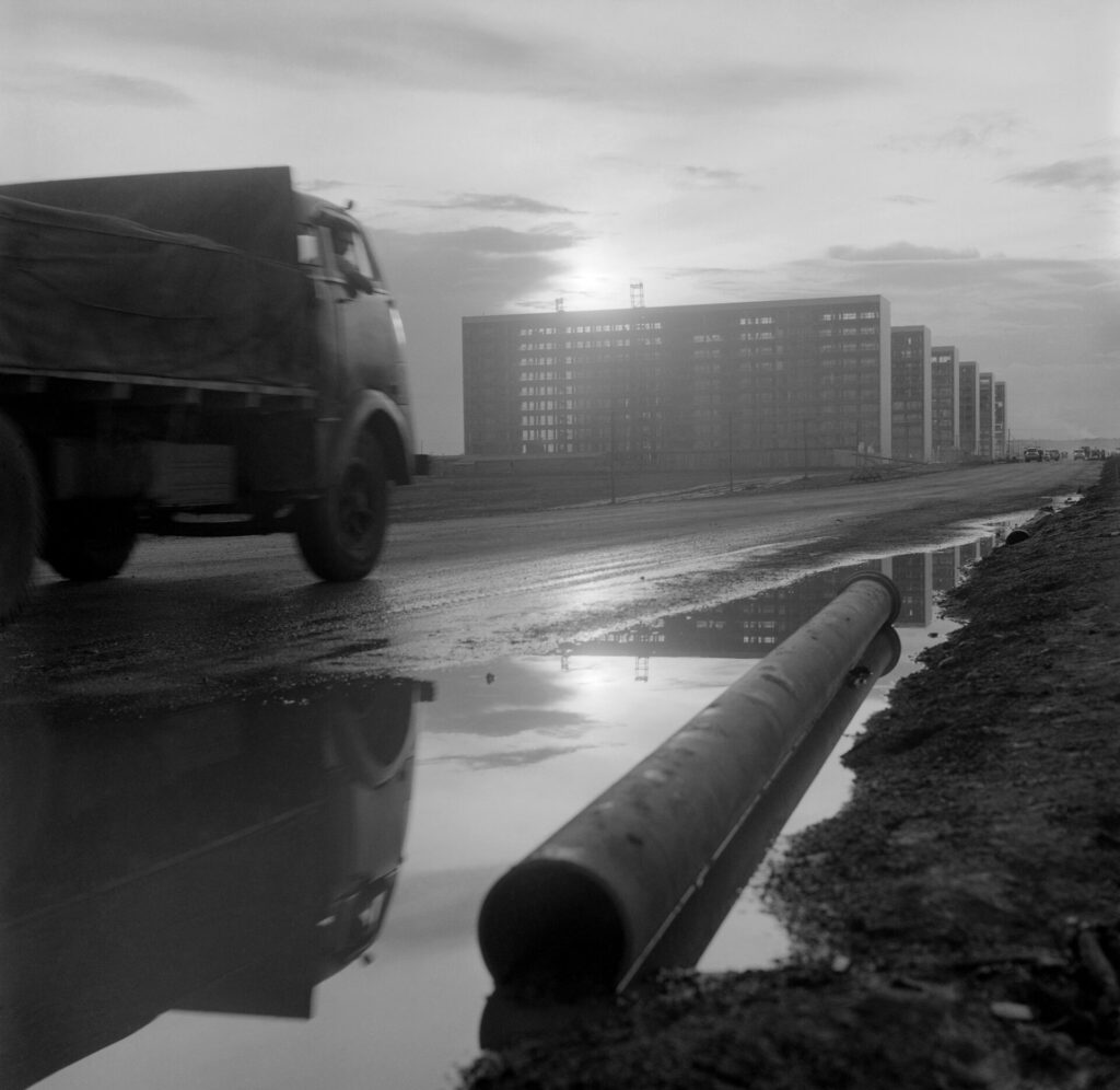 As etapas da construção da nova capital brasileira, realizadas em ritmo apressado, de vergalhões de aço e andaimes gradualmente cobertos pelo concreto que lhe conferiu singularidade, foram registradas em belíssimos ângulos geométricos pelas lentes dos fotógrafos Peter Scheier, Marcel Gautherot, Jean Manzon, Mario Fontenelle e Jesco Puttkamer.