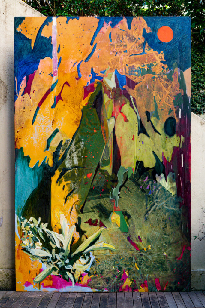 E para criar uma ambientação especial, Luiza descontruiu o espaço expositivo e fez uma instalação que convida os visitantes a entrarem em uma verdadeira clareira. Para isso, a artista coletou na floresta da Serra da Mantiqueira, lugar de onde carrega grande parte das suas memórias afetivas, vinte sacos de folhas que foram transportadas para o Museu da República, onde cobrirão o chão em um espaço de 11 x 4 metros de diâmetro. “Quero que o público sinta a floresta através das pinturas com suas cores, matizes e texturas, além do aroma que exala das folhas e deixar no ar a pergunta: Você está olhando a floresta, ou é ela que te olha?”, afirma Luiza, que faz questão de dizer que essa floresta mora dentro dela até hoje.