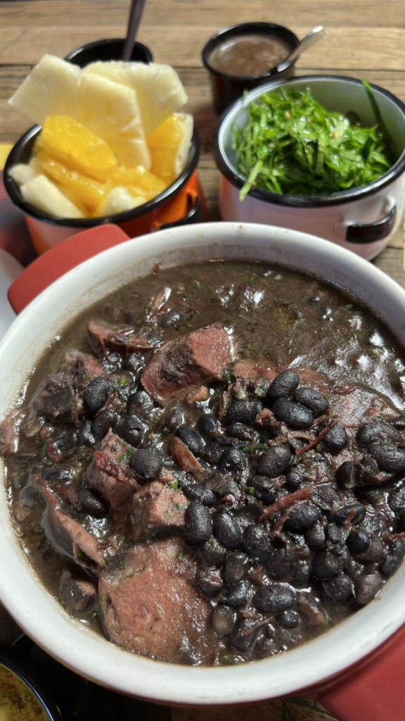 De entrada, a Feijucaduca apresenta o Torresmo crocante; Bolinho de arroz da vovó; Mandioca amarela (crocante por fora e cremosa por dentro); Pastéis variados e Caldo de feijão temperado. Para os pratos principais, a tradicional Feijoada do chef Dudu Camargo, leve e cremosa, com os acompanhamentos: Arroz branco; Couve com manteiga dourada e alho crocante; Farofa de cebola; Molho de pimenta; Conserva de pimenta da casa e Rodelas frescas de laranja e abacaxi.