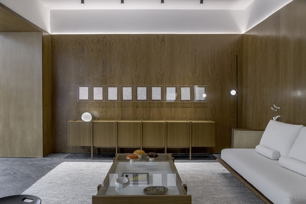 Grandes nomes do design brasileiro assinam o mobiliário, como Jader Almeida, Sérgio Rodrigues, Bernardo Figueiredo e Guilherme Wentz, que se misturam a criações autorais do próprio Felipe.