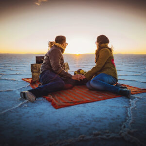 A imensidão do maior deserto de sal do mundo pode ser um tanto romântica – não à toa, tem até roteiro pronto para quem deseja fazer o pedido de casamento por lá. O Salar de Uyuni, na vizinha Bolívia, tem sido o cenário escolhido por casais apaixonados para jantares à luz de velas e até cerimônias de destination weddings.