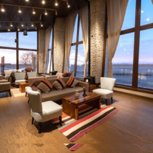Uma vez no destino, o hotel escolhido é o Palácio de Sal, o primeiro do mundo construído inteiramente com sal. O ponto alto são os tratamentos do spa feitos com sal e a piscina indoor de borda infinita, que proporciona a melhor vista para um pôr do sol mágico no deserto. Ao todo, são 40 elegantes suítes decoradas com tecidos andinos e com direito a janelões voltados para o Salar.