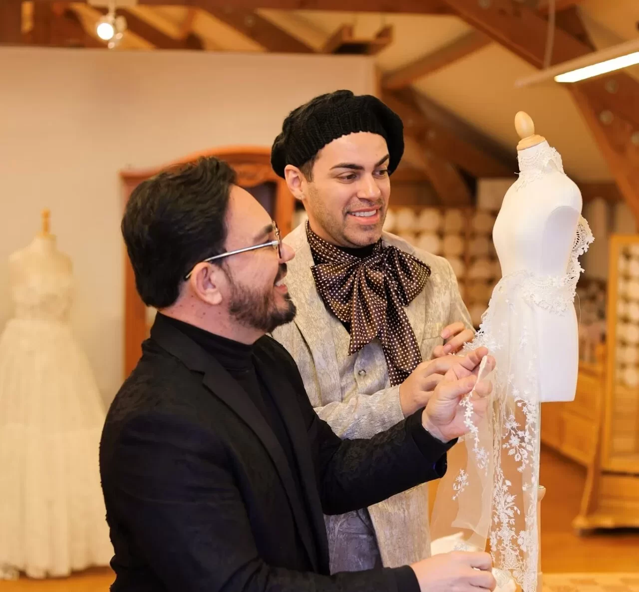 Durante essa jornada, o duo explorou um universo inspirador, visitando ícones da moda de luxo como a Galeria Dior, a joalheria Van Cleef & Arpels, o Museu da Moda do Louvre e a Fondation Louis Vuitton. Além das visitas, também participaram de palestras com grandes nomes do universo noiva e luxo, ampliando o repertório criativo e fortalecendo o olhar artístico que define o atelier.
