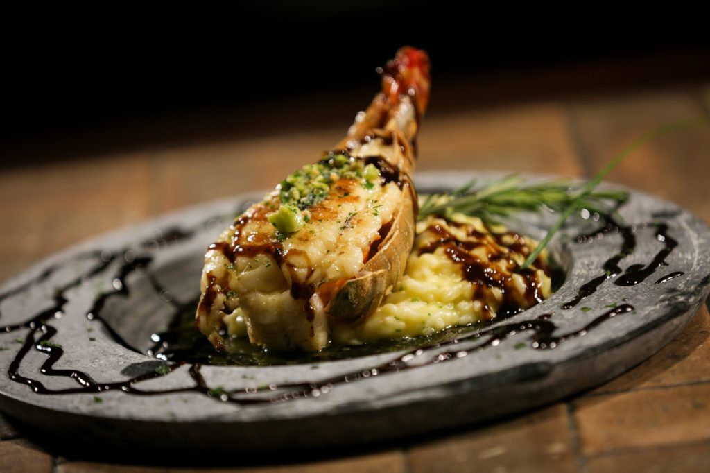 As opções de entrada passam por mix de folhas servidas com vinagrete de lagosta e redução de balsâmico e maracujá; e pela bruschetta, coberta com o crustáceo e creme de parmesão levemente gratinado.