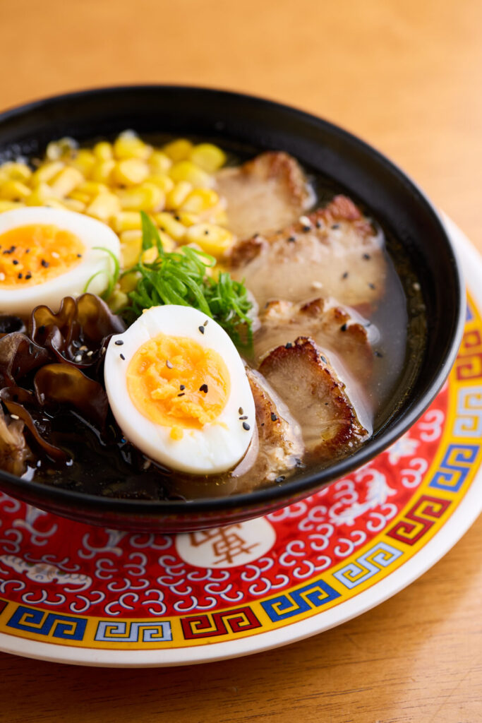 Cantón: Porco assado, macarrão, fungo wanyi, ovo ajitama (cozido no shoyu), milho no wok e cebolinha (R$ 58).