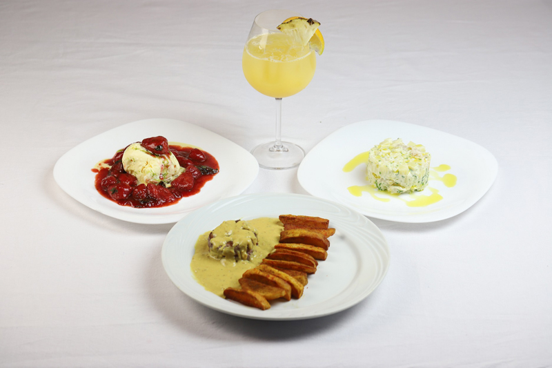 Prato Principal: carne de sol feita na casa com baião de dois cremoso e tartar de banana;