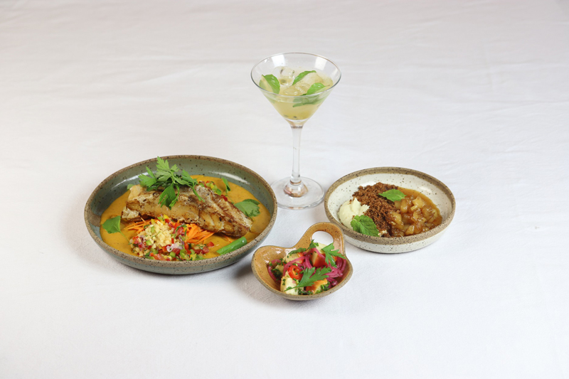 Entrada: Ceviche de Caju – Caju em cubos, picles de cebola roxa, pimenta dedo de moça e limão siciliano;