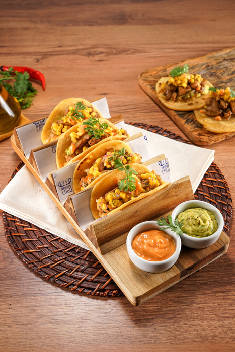 Taco latino (tacos de lombo de porco na churrasqueira com alface, jalapeño e guacamole) é a opção do BierFass Lago (R$ 35,00). Acompanham seus molhos.