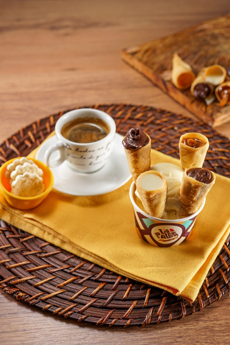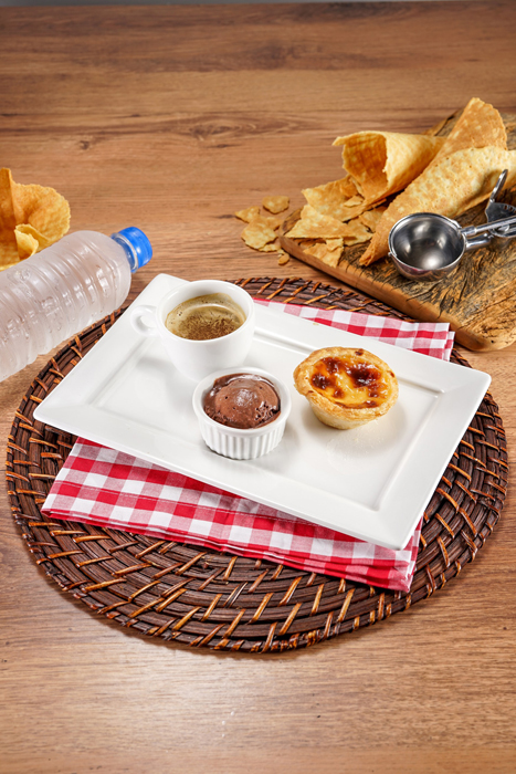 No Stonia Ice Creamland a opção é o combo com Café expresso, degustação de gelato, pastel de Belém e água sem gás (R$ 17,00).