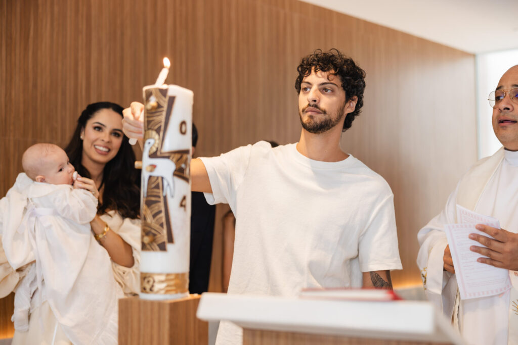 Os pais escolheram com carinho o padre Omar Raposo para realizar o batismo, já que a conexão entre eles já vem de 2022, quando o reverendo oficializou o casamento de Carol e Caetano em Punta del Este. Omar compartilhou sua alegria em estar presente neste momento especial da família. “É uma oportunidade de reencontrar Caetano e Ana, e agora conhecer o grande fruto dessa relação matrimonial e realizar aqui o sacramento do batismo, integrando mais e mais a nossa fé, a esperança e os valores que essa família tanto vive, com tanta verdade, de forma tão especial”, disse o padre.