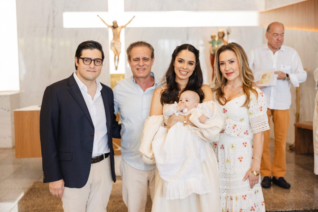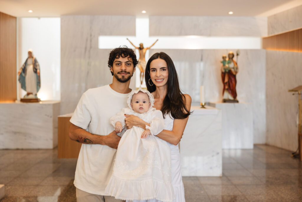 Na tarde do último domingo (29), Teresa, filha de Ana Carolina Valença e Caetano Tonet Camargo, foi batizada em cerimônia na capela São José, na Paróquia Perpétuo Socorro, no Lago Sul.