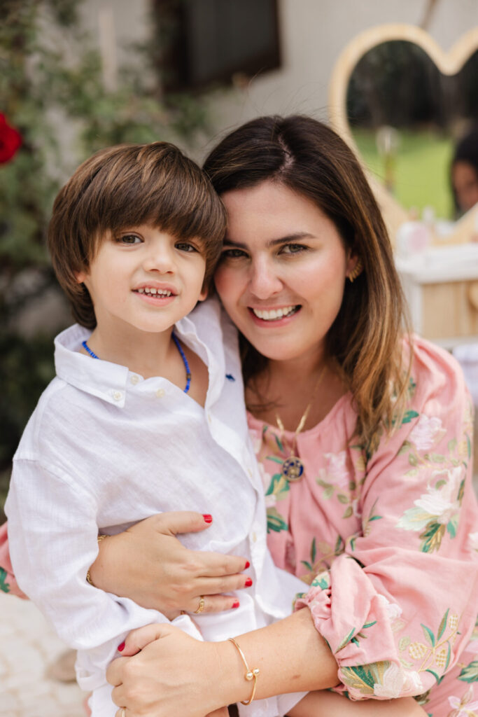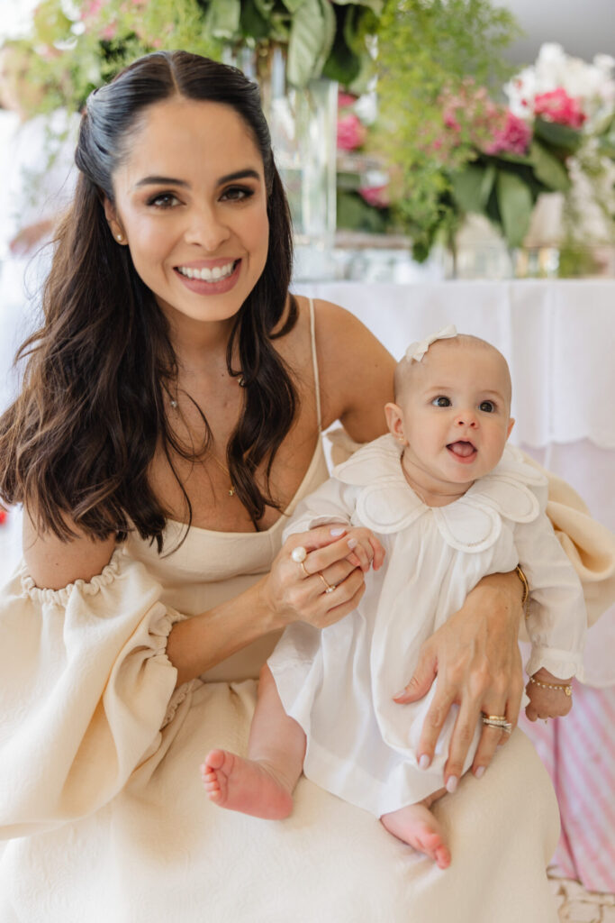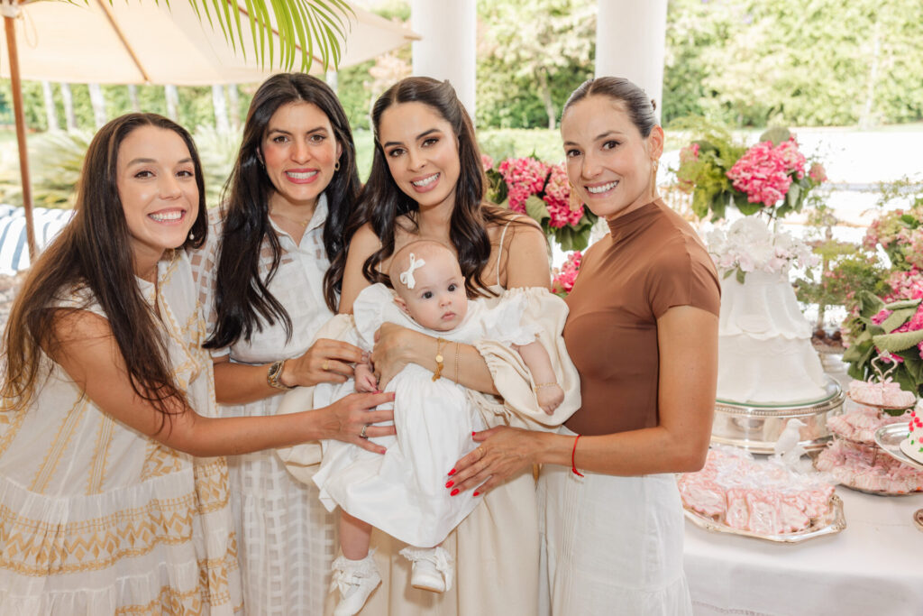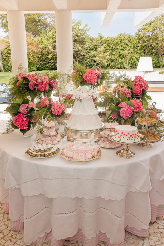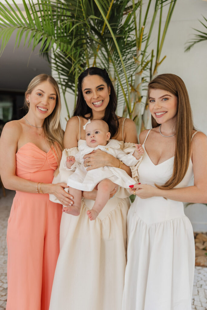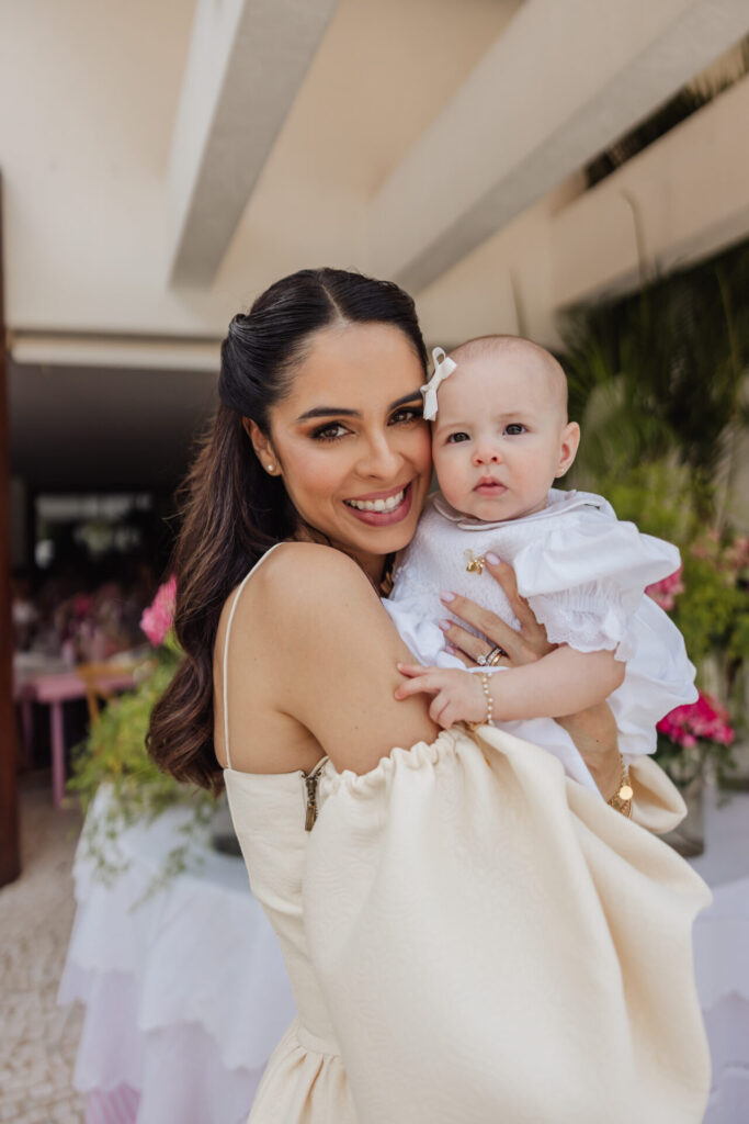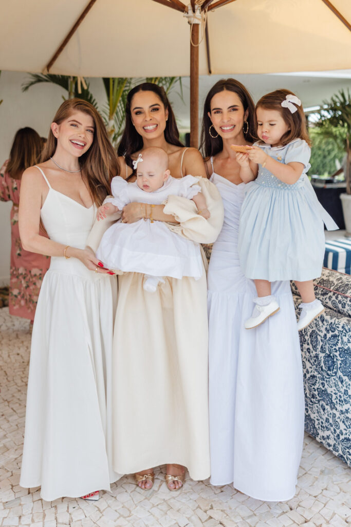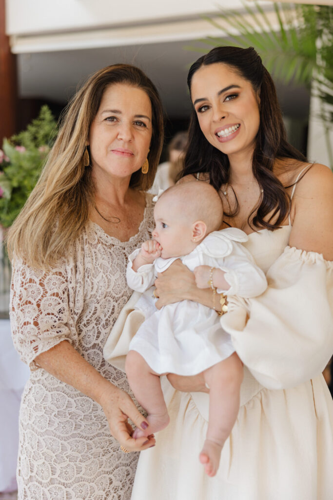 A decoração, elaborada por Maria Tereza Cavalcanti, trouxe um toque especial ao ambiente, com tons de rosa e arranjos florais. A mesa de doces, adornada com um bolo da Cake Forever e bombons de Tatiana Barros e Cirônia Doces, completou a delicadeza do dia dedicado à pequena Teresa.