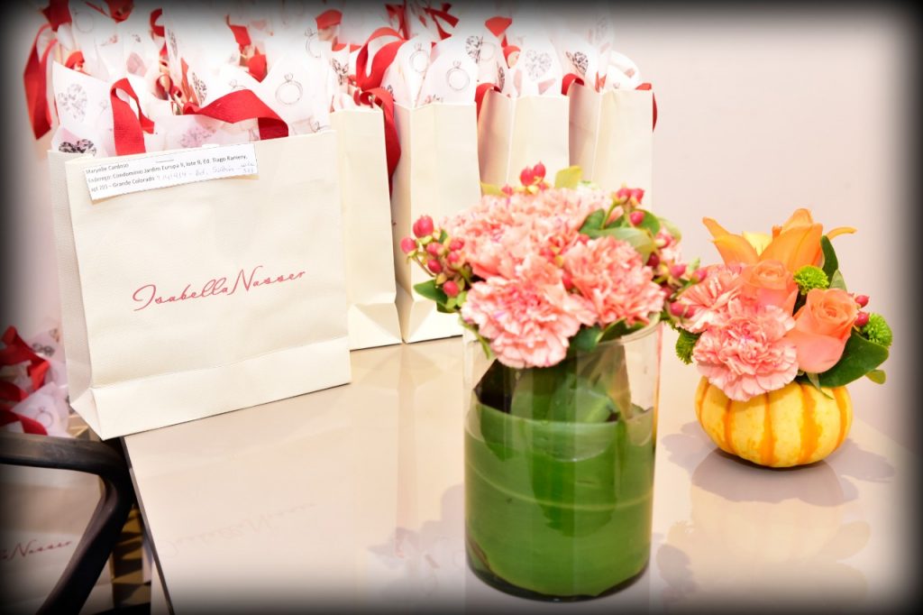 Como adorar mimar suas clientes, Isabella preparou um presente especial e personalizado para todas as suas convidadas, que amaram o paparico!