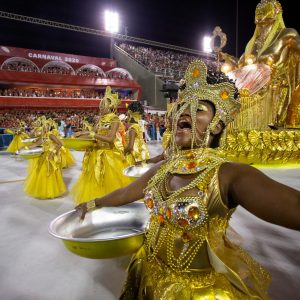 A Grande Rio levou à avenida o enredo “Tata Londirá – O canto do caboclo no Quilombo de Caxias”. No trabalho dos carnavalescos Gabriel Haddad e Leonardo Bora, a escola contou a história de João Alves Torres Filho, o babalorixá Joãozinho da Gomeia, que virou um ícone do candomblé no Brasil.
