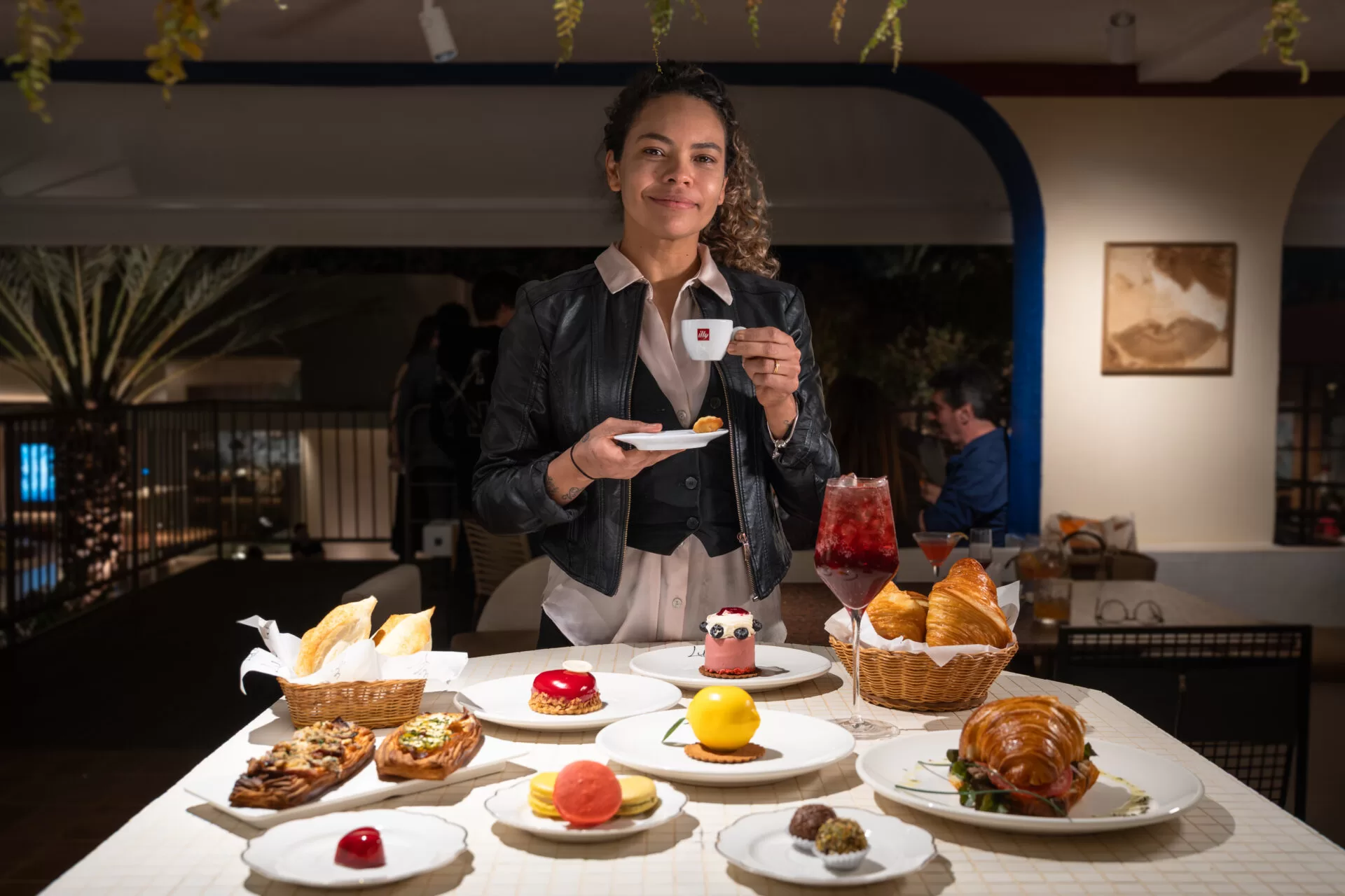 O café da mostra fica a cargo do Lilie Pâtisserie & Boulangerie, casa especializada em viennoiserie e pâtisserie francesa. O menu reúne opções salgadas como ovos benedict e quiche Lorraine, além de sobremesas refinadas como entremets de tiramisu, éclair de pistache e macarons. O espaço arquitetônico, assinado pelo escritório Rava Arquitetos, propõe um ambiente acolhedor, colorido e com mobiliário de designers locais, convidando à pausa.