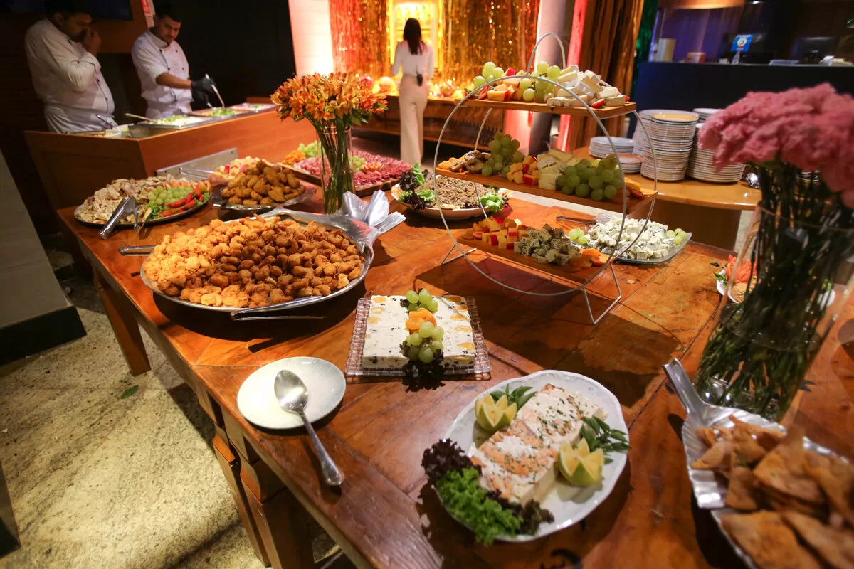 O buffet será um dos grandes destaques da noite, pensado para surpreender desde o primeiro momento. Entre as entradas, o público encontrará opções como camarão crocante, bolinhos de bacalhau, mesa de ceviches, tábuas de queijos e frios, carpaccios, salada de lentilha e panceta, além de mini panhocas com filet ao gorgonzola e croquetes de mandioca com molho de queijos — uma seleção que combina sofisticação e conforto.