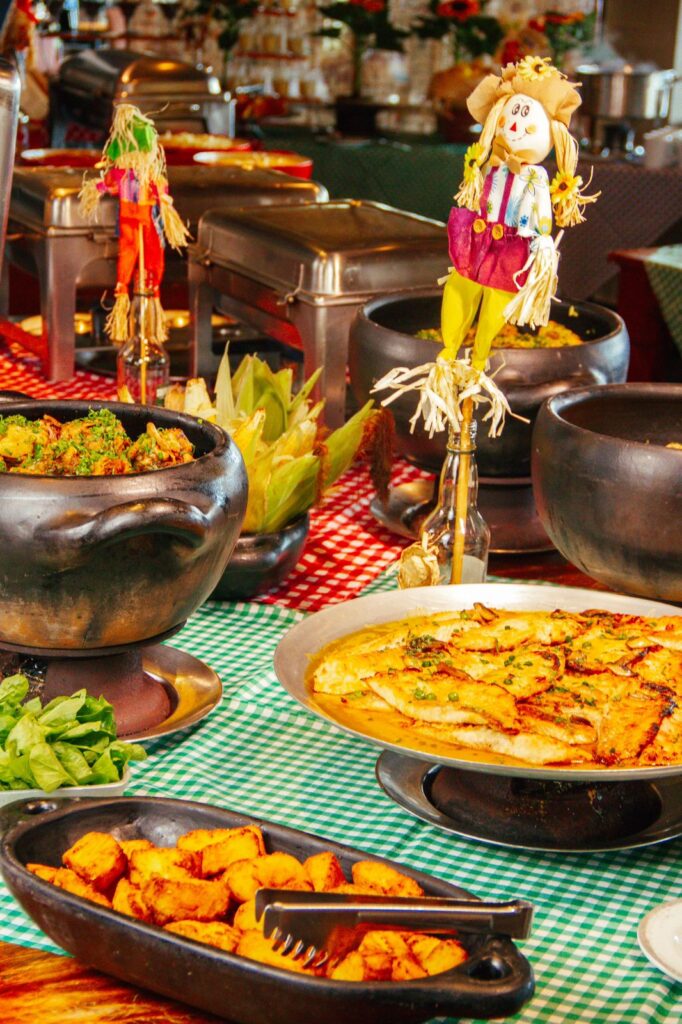 E o clima junino não estará somente nas opções gastronômicas oferecidas. O almoço tem decoração típica: bandeirinhas e balões para reforçar a atmosfera da festa típica.
