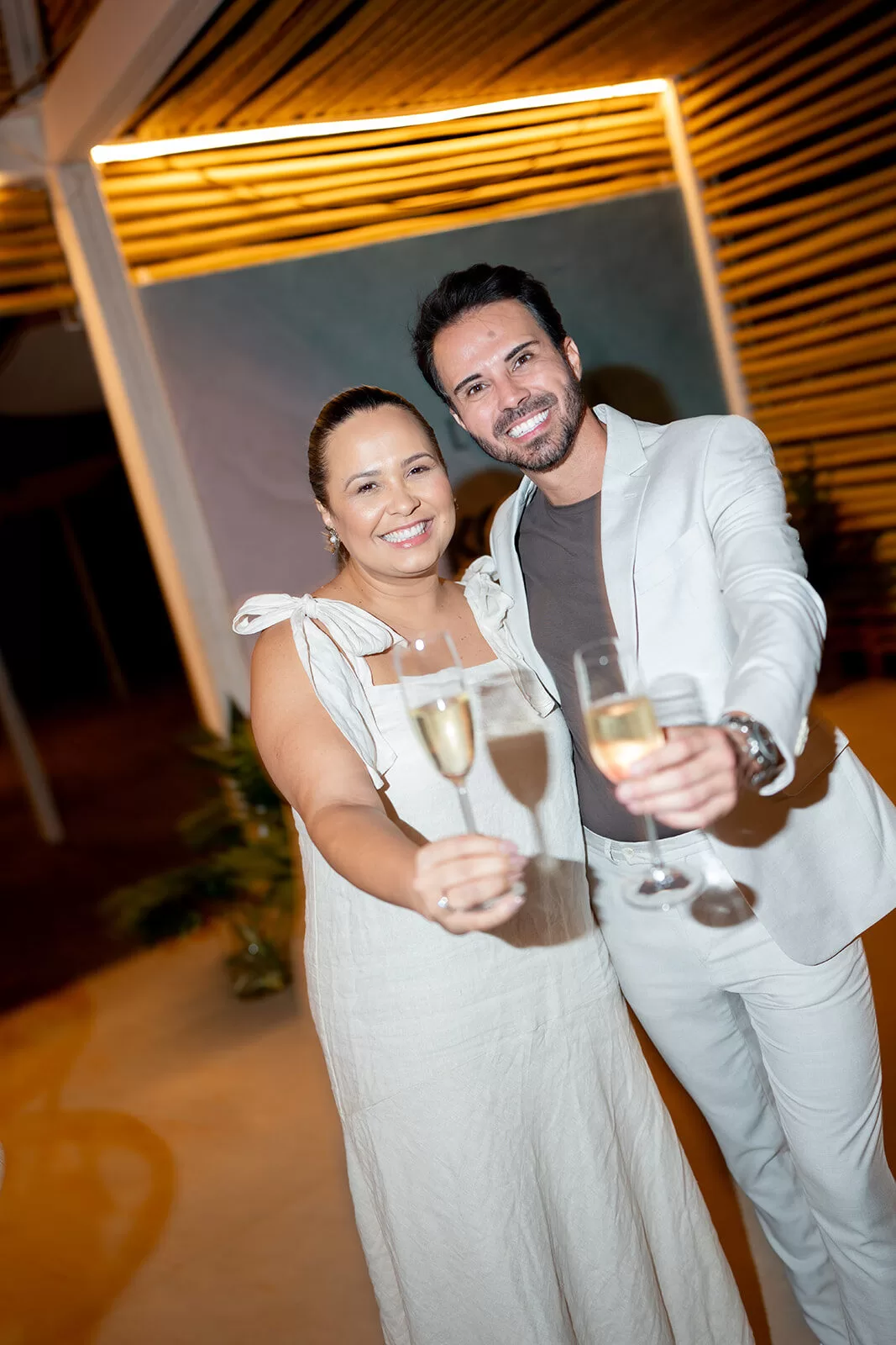 A celebração contou ainda com a assinatura da assessoria de Júnior Cerimonial e da decoradora Fran Guttierrez, responsável pelo projeto de ambientação. A cobertura ficou a cargo do fotógrafo Gabriel Tenório e do filmmaker Radytz, especialistas em destination weddings.