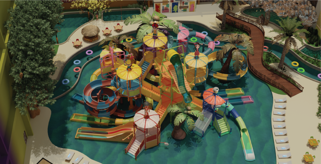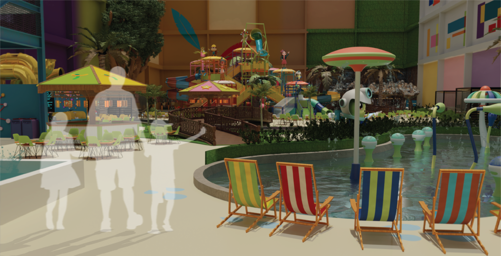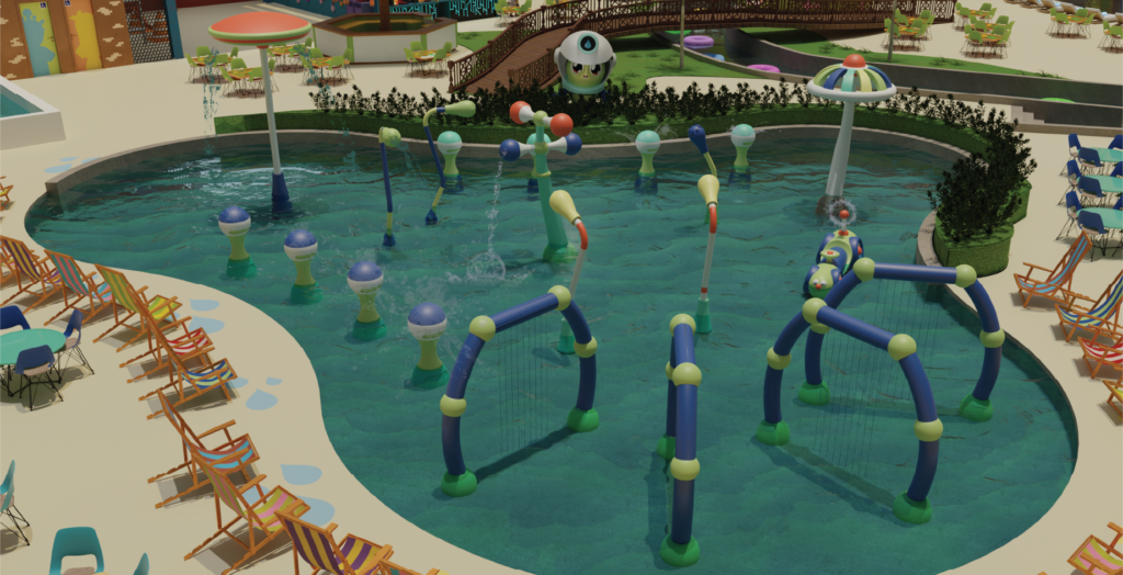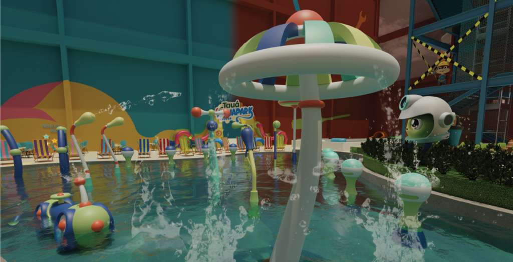 O Aquapark é um espaço imersivo e vibrante, concebido estrategicamente como o lar dos Taualegres. No parque, esses personagens ganham vida por meio de esculturas gigantes e cada atração foi cuidadosamente pensada para refletir sua personalidade e história. Esse cenário temático envolvente promove uma experiência diferenciada, integrando diversão e fantasia. Com uma arquitetura lúdica e um ambiente acolhedor, o espaço convida as famílias a embarcarem em uma jornada de descoberta e encantamento.
