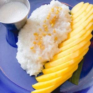 Same Same – Mangoooo Sticky Rice (arroz doce “puxento”, leite de coco thai, açúcar e flor de sal servido com manga fresca e castanha de feijão moyashi), R$ 28,00.